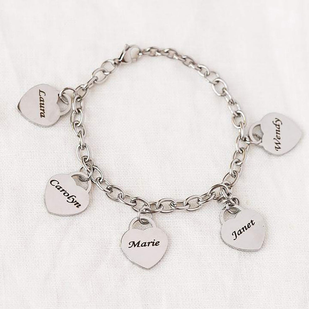 Custom Heart Gold Charm Bracelet Mom Bangle Bracelet Custom Bracelet for Mom with Children's Names Gift for Women