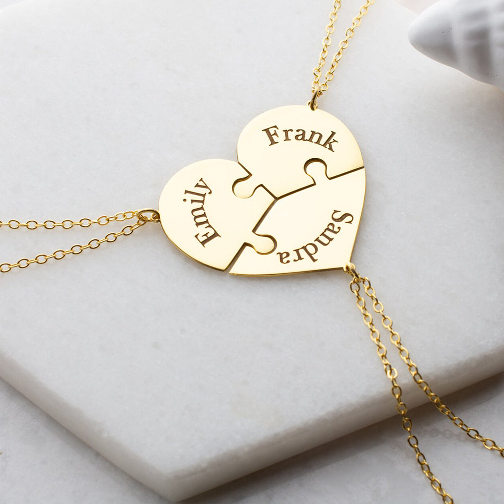 Heart Puzzle Name Necklace Personalized Pendant Puzzle Necklace Customized Family Necklace Gift for Her