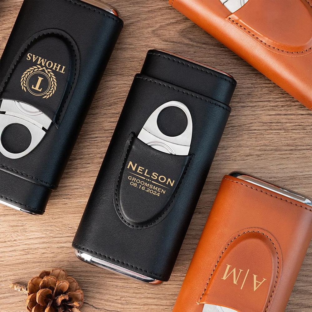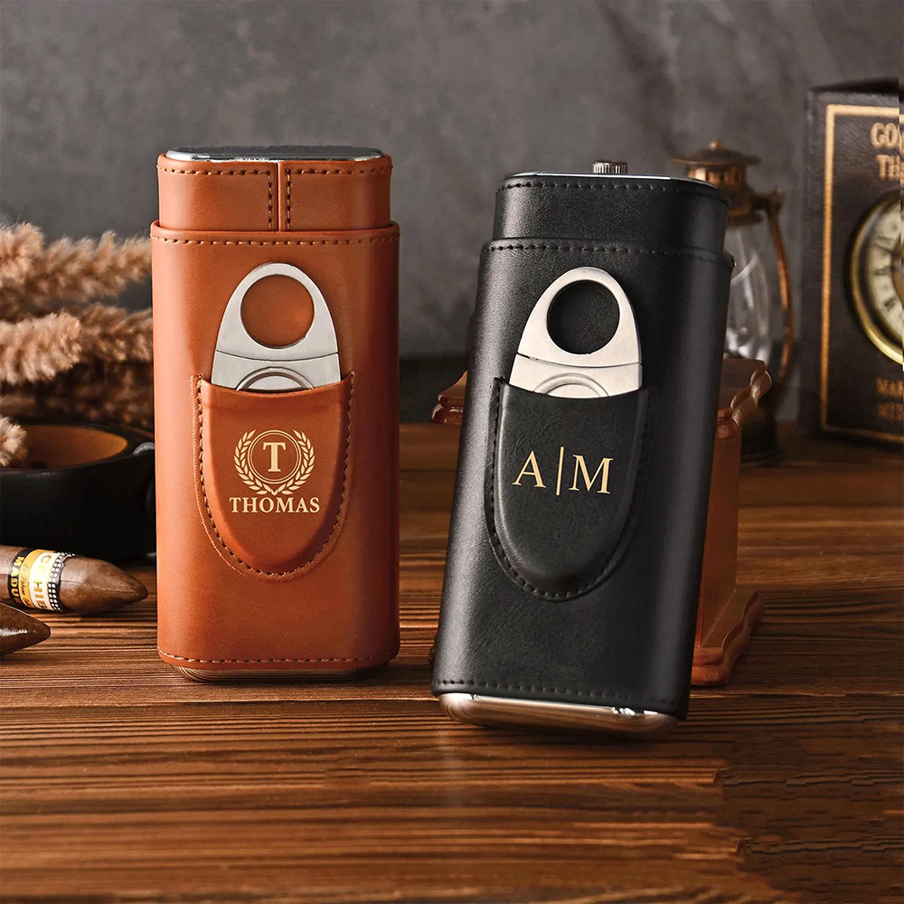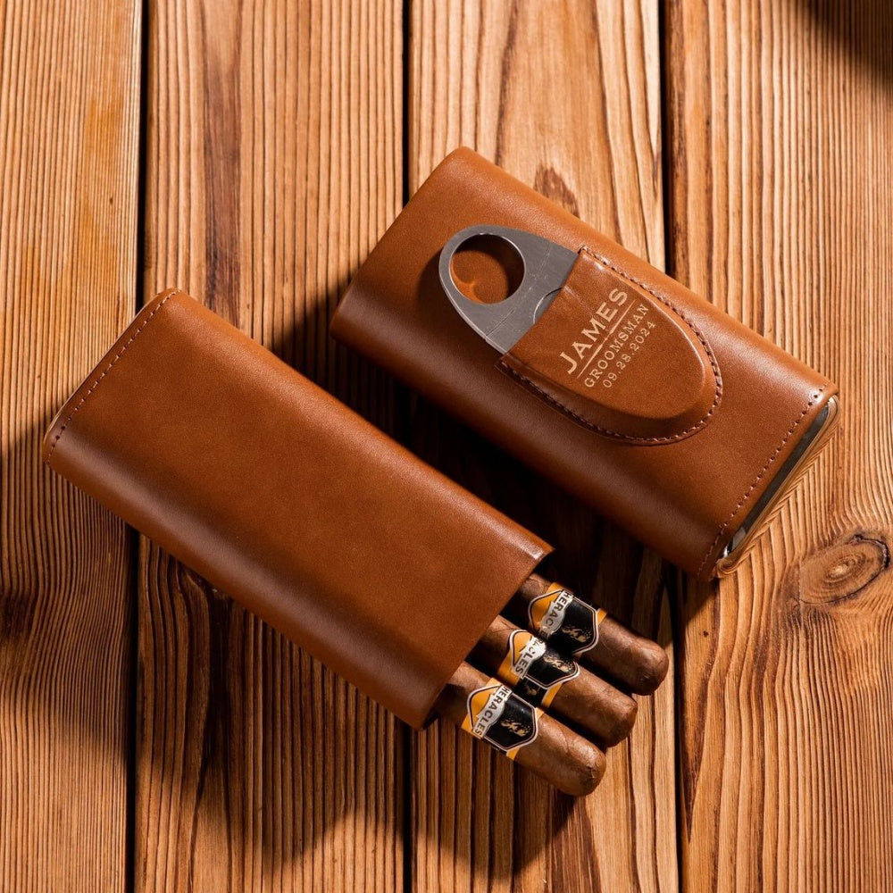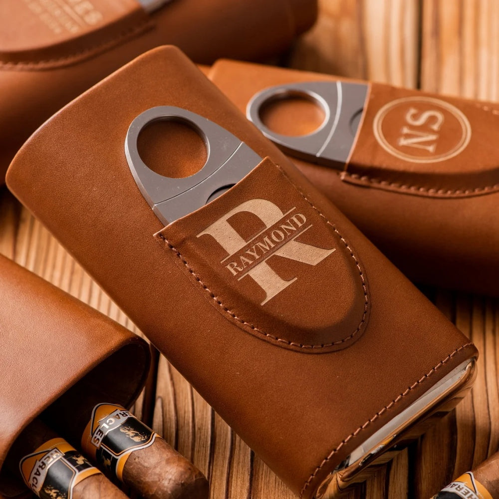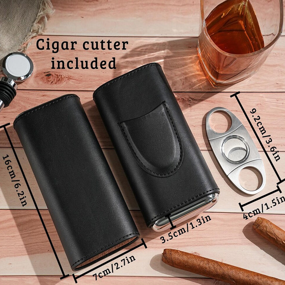 Personalized Cigar Case with Name Custom Leather Cigar Holder with Cutter Cigar Travel Case Gift for Dad Husband Gift for Him