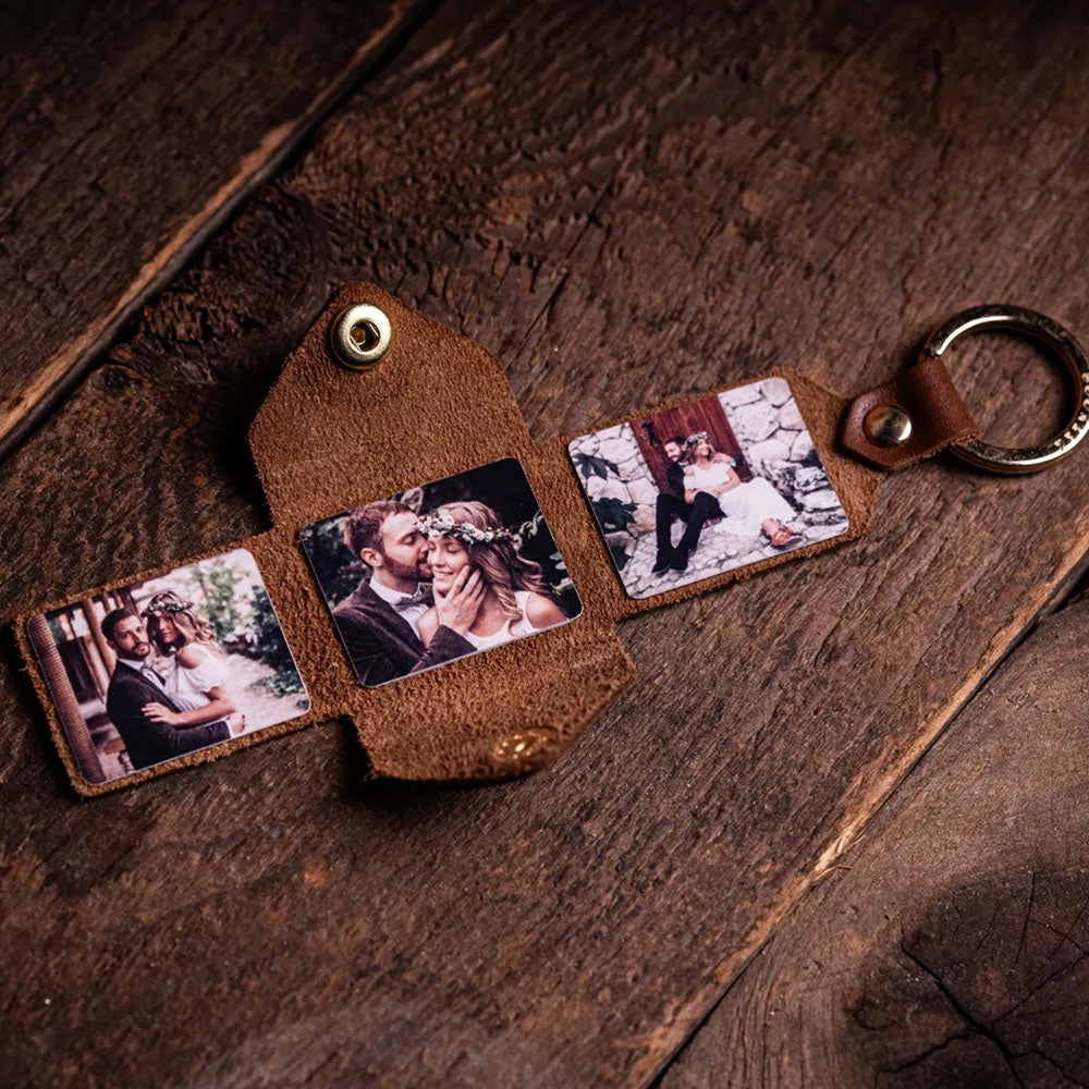 Anniversary Gift for Him Custom Mans Leather Photo Keychain Custom Picture Keychain for Him Gift for Dad